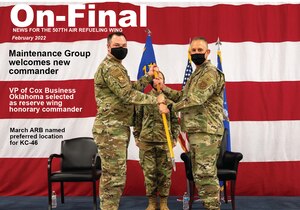 Feb. 4, 2022 ON-FINAL NEWS BULLETIN – Feb. 4, 2022 (Vol 42, No. 2) ON-FINAL NEWS BULLETIN – Feb. 4, 2022 (Vol 42, No. 2) (Click headline to follow link to story and photos)507th Maintenance Group welcomes new commanderLt. Col. Terry Rosenbalm succeeded Col. Karwin Weaver as the commander of the 507th Maintenance Group here in a change of command ceremony Jan. 8,